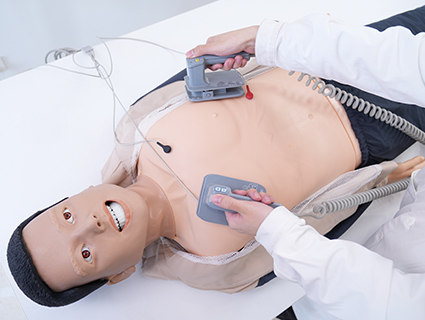 • Real defibrillators and monitors are available